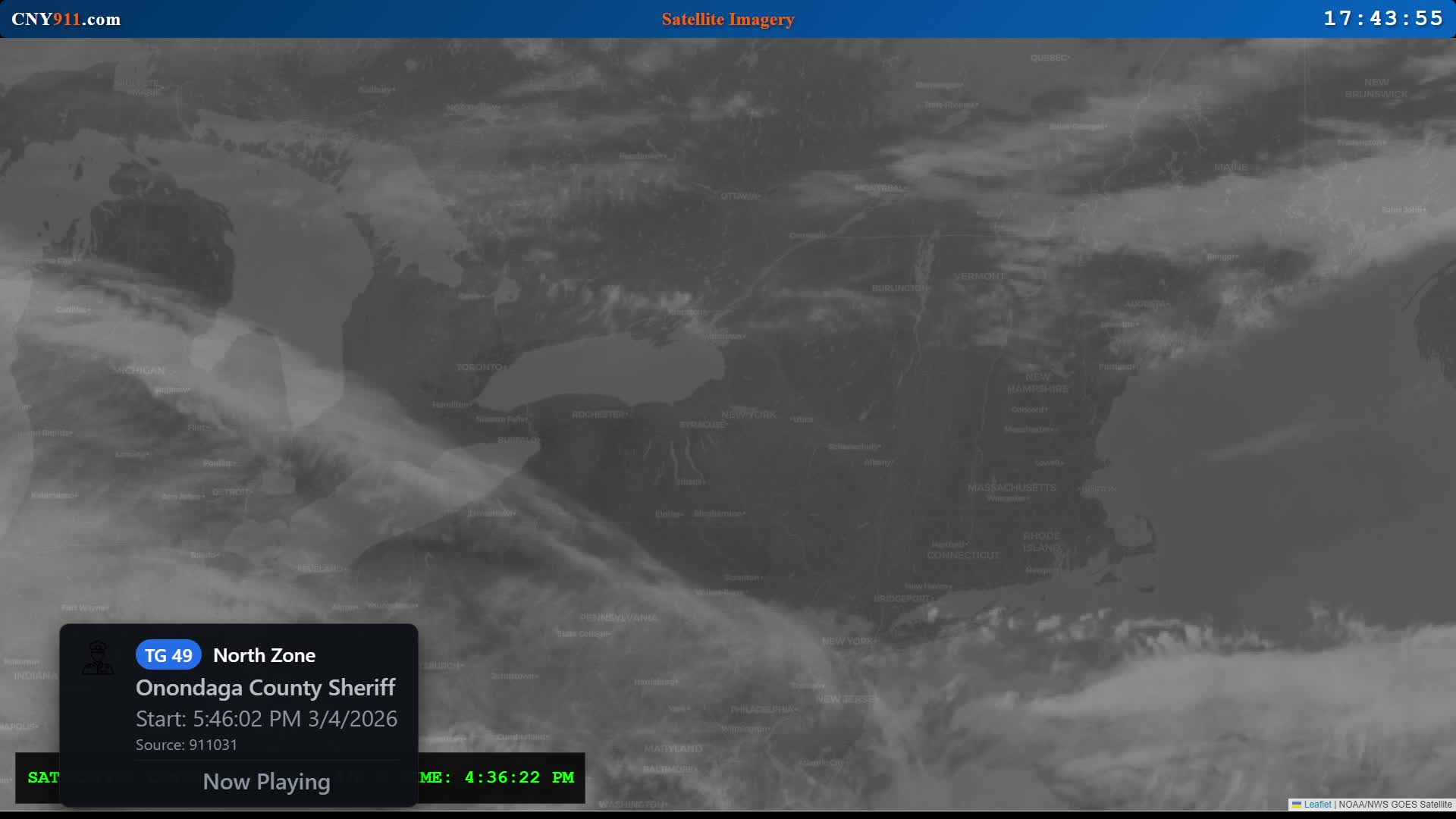Welcome to the live stream from CNY911.com, your source for up-to-the-minute coverage of emergency events in Onondaga County, NY. In this live stream, we'll be providing streaming audio from the Onondaga County Police, Fire, and EMS radio scanner, as well as text updates on major events listed on the CNY911 website.